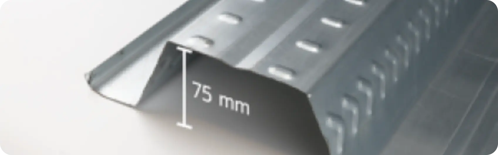 แผ่น Metal Deck รุ่น MD-75W รุ่นเสริมความแกร่ง สำหรับงานช่วงพาดกว้างและรับน้ำหนักมากเป็นพิเศษ